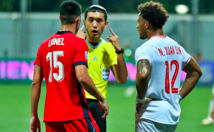 Phút 83, tranh cãi xảy ra khi siêu phẩm của Nguyễn Xuân Son không được công nhận. Sau 5 phút tham khảo VAR và xem lại băng hình, trọng tài xác định bóng chạm tay tiền đạo Việt Nam. Trước đó, Xuân Son có pha tì đè ấn tượng và tung cú sút không thể cản phá.