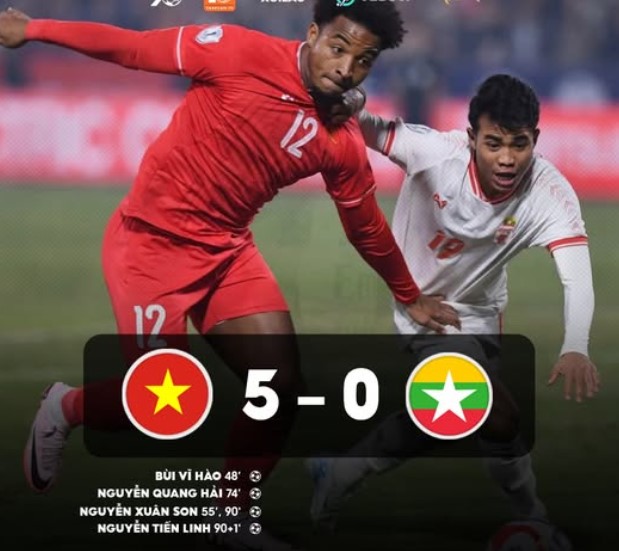 ĐT Việt Nam chính thức giành vé vào bán kết AFF Cup 2024 với chiến thắng 5-0 trước ĐT Myanmar ở lượt trận cuối cùng bảng B.